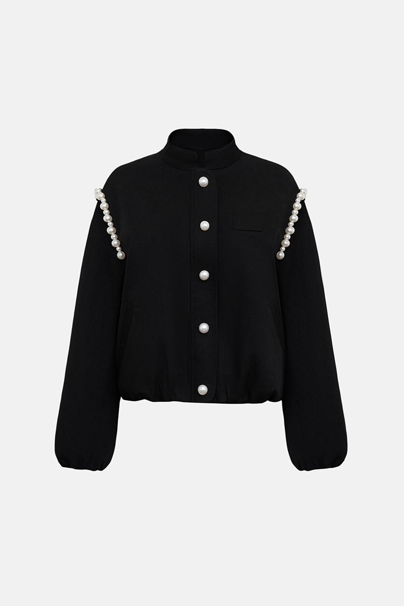 Джинсовый бомбер из коллекции MATILDA выстраивает образ подчёркнутой сдержанности, в котором декоративность используется как инструмент власти. Плотная форма и закрытый силуэт создают ощущение дистанции, в то время как жемчужная отделка на плечах добавляет напряжённый акцент, работающий на контрасте жёсткости и хрупкости. Деним удерживает структуру и не позволяет образу стать мягким, фиксируя внимание и присутствие. Этот бомбер не украшает — он обозначает позицию и задаёт правила.
