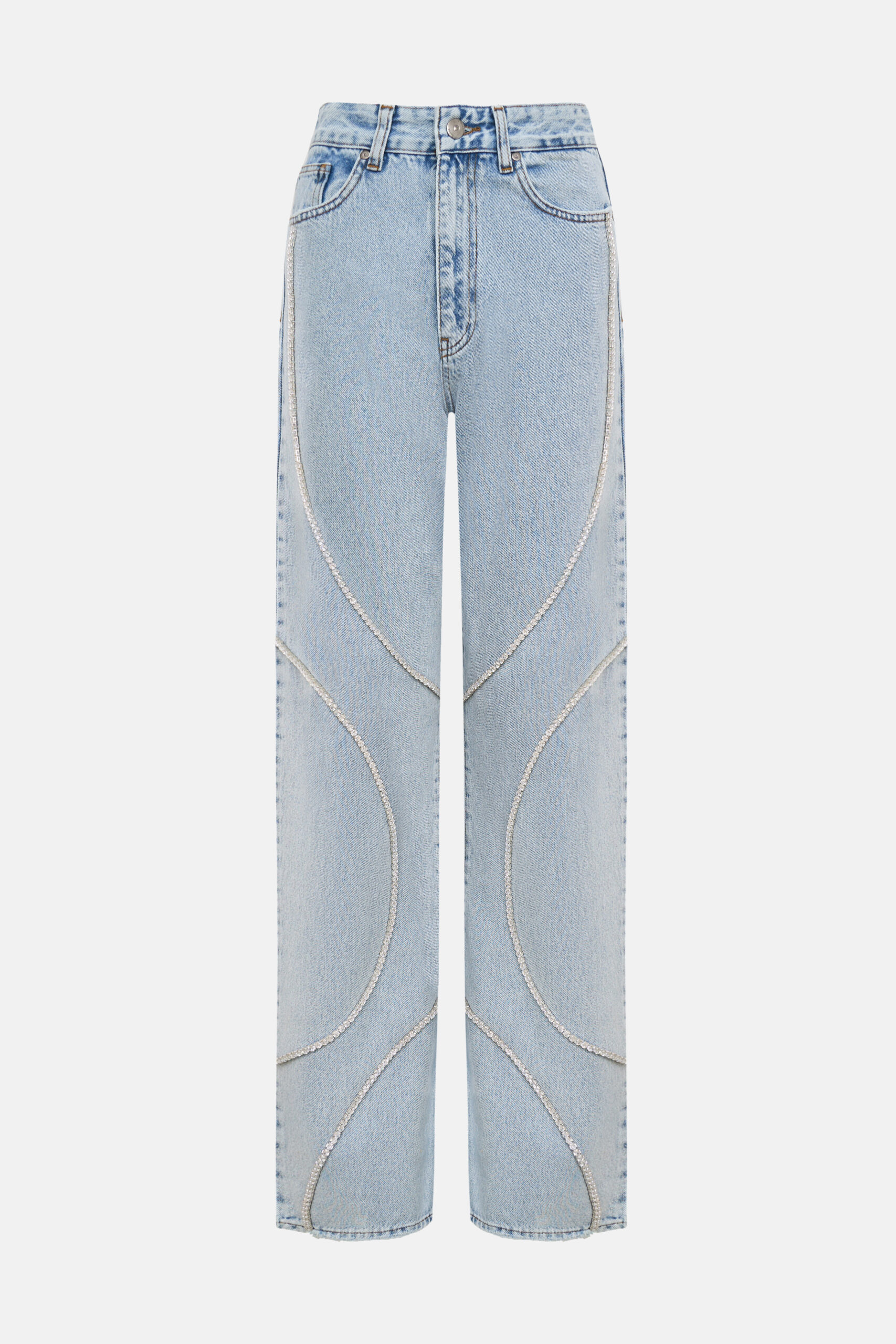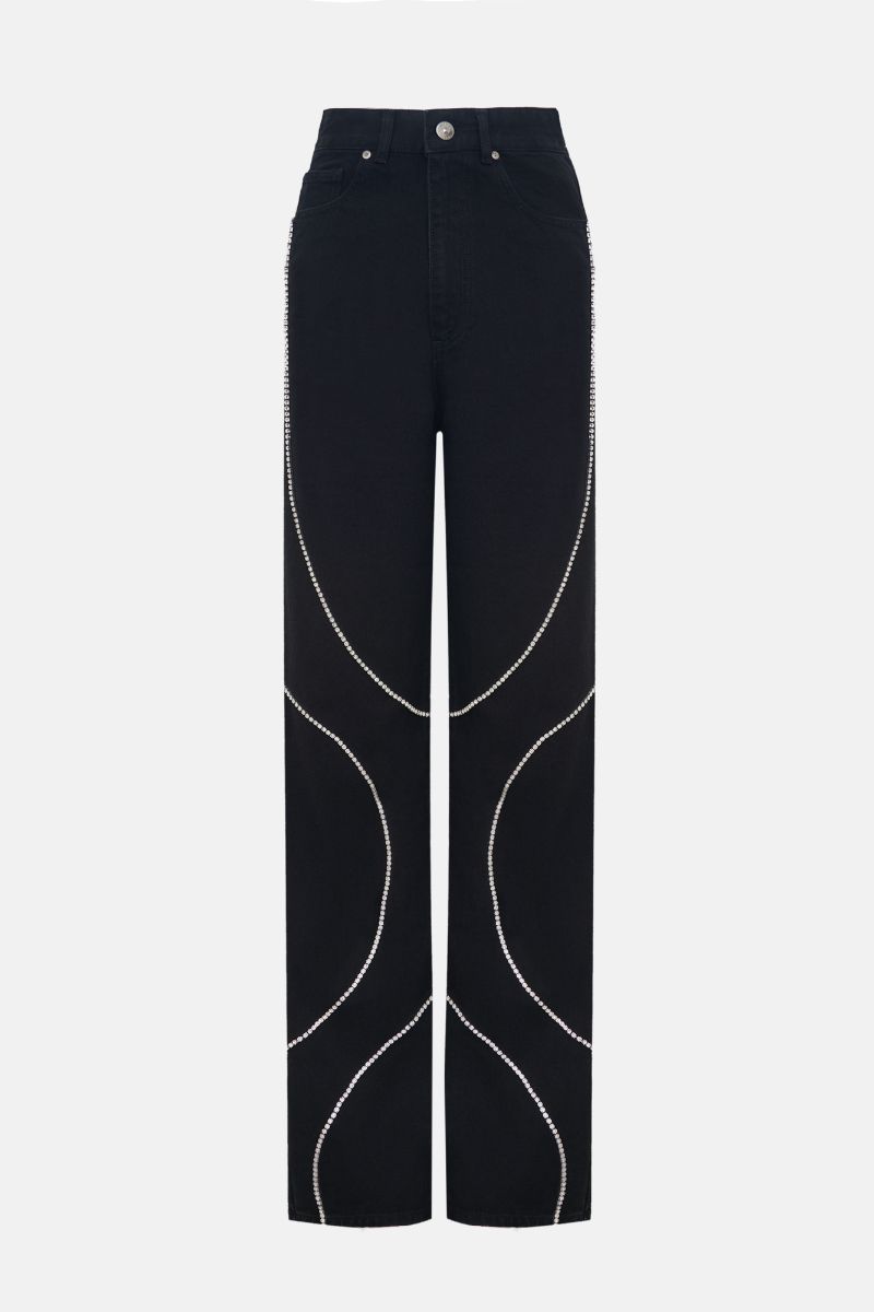 Джинсы DIAMOND на высокой посадке прямого кроя выполнены из плотного и высококачественного денима в сером цвете. Изделие декорировано дорожками из сияющих камней. Модель станет акцентным элементом в любом образе. Сочетайте джинсы с корсетами, жилетами и жакетами из коллекции ALINE. Ярким дополнением станет цветок-чокер, который Вы сможете использовать в качестве аксессуара на шее, поясе или сумке.