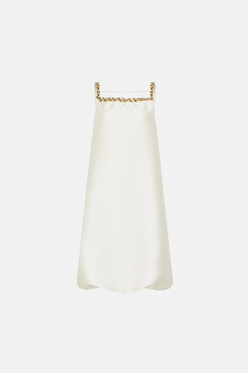 Лаконичное чёрное платье PATRICIA выполнено из гладкого сатина, который мягко ложится по фигуре, создавая лёгкий и непринуждённый силуэт. Акцентные бретели, декорированные изящными камнями, придают образу утончённость и лёгкий блеск. Глубокий вырез на спине добавляет платью чувственности, сохраняя при этом элегантный минимализм. Идеальный выбор для вечернего выхода или стильной вечеринки.